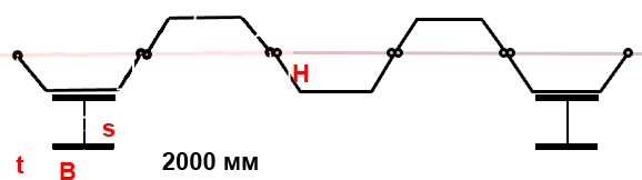 B= 175 mm, H= 674 mm, S= 7 mm, T= 11,0 mm